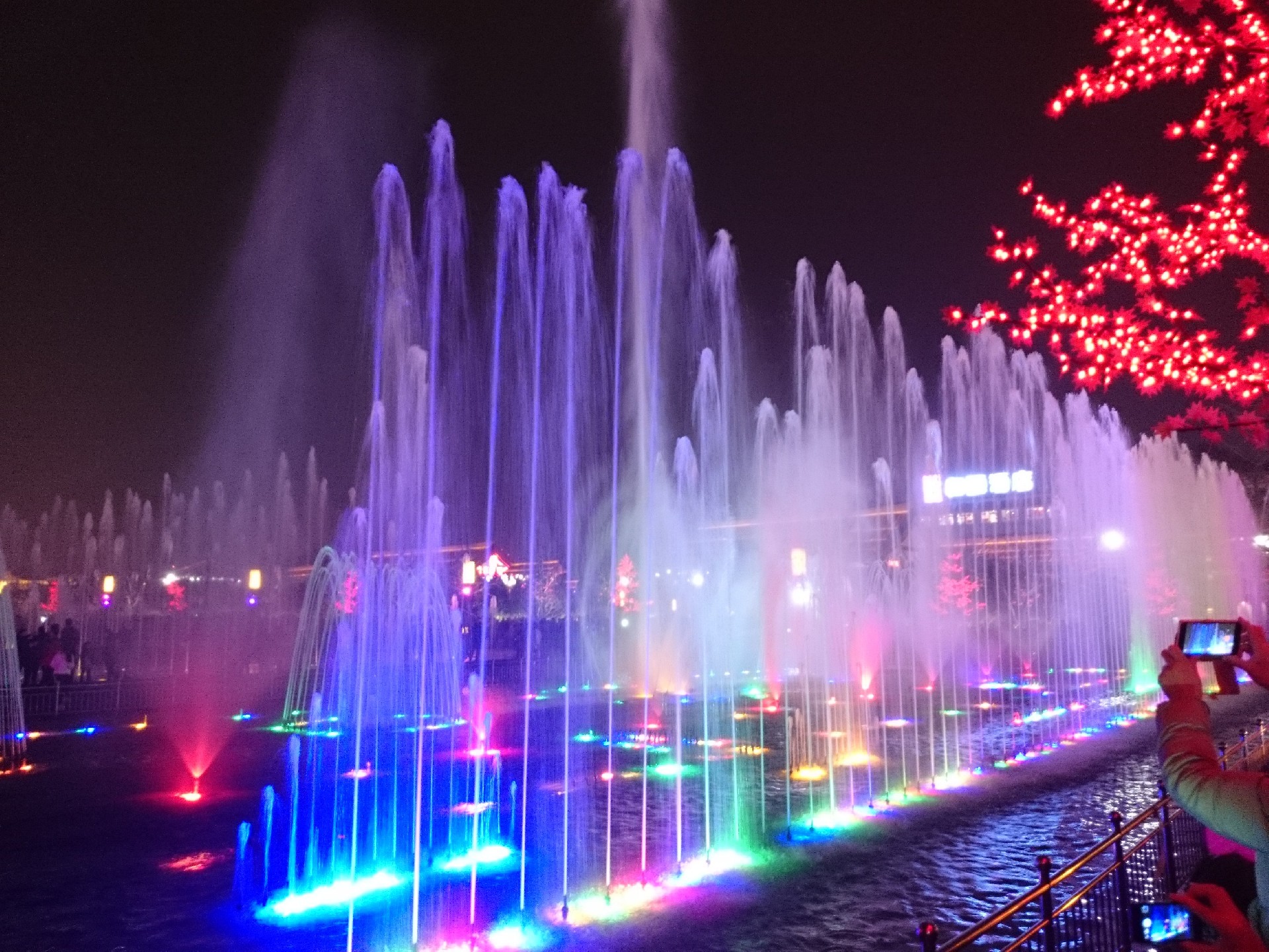 玻光喷泉、光亮跳泉所形成的水柱沿着设定的轨迹喷射,一条条大小各异的跳跃拱门,抛向半空中,随即又准确无误的定位落下,在空中挂起一道幽雅的弧线。水流即可以长流线形存在,首尾连贯,如同一条玻璃水柱,此时形成的水景通常我们称其为波光泉。弧形波光水线穿池而出。单而高的喷、小而飘逸的泉,更强化了起伏效果,一种轻灵、腾飞之势呼之欲出,从而增加了亲水性,在流动的水面中创造了不同层次的水景,形成颇具特色的景观。