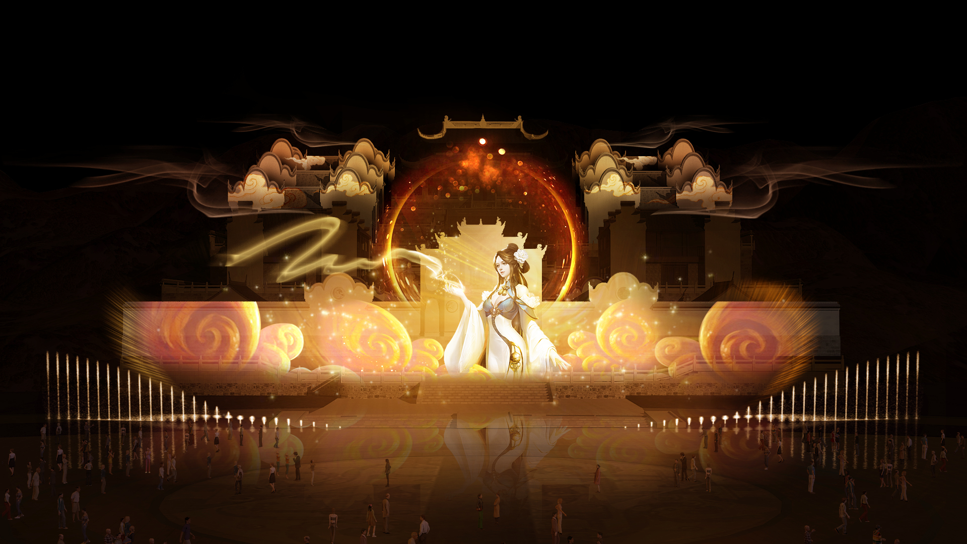 喷泉水秀水幕电影、只能在场地非常开阔的,室外区域举行,水池、湖面、河边、江边、海边,或能提供极好供水、排水系统的广场等。